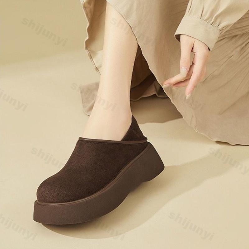 Fashion Women's Platform Loafers 2025 Autumn Winter New Fashion Slip on Height Increase Casual Shoes Comfortable Vintage Half Slippers