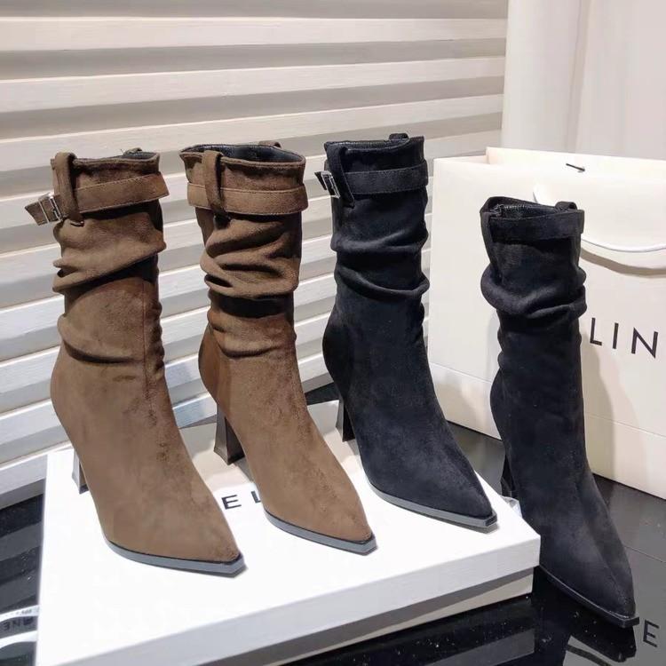 Fashion Fashion Belt Buckle Modern Boots Women 2025High Quality Women's Shoes Slip-on Women's Boots Sexy Pointed Toe Knee-High Boots
