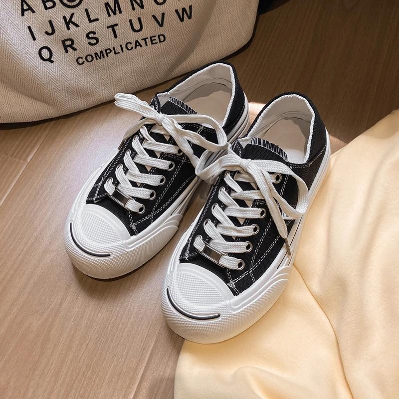 Fashion Autumn Women's Vulcanize Shoes Round Toe Flat Shoes for Women Lace-up Platform Sneakers Outdoor Classic Youth Low Top Sneakers