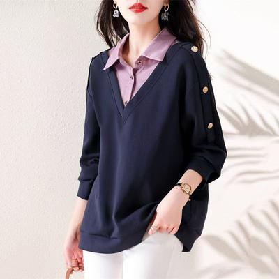 Falske To T-skjorter Damebluse Vår og høst Løs koreansk Langermet strikkeplagg Damemote Allsidige kvinner