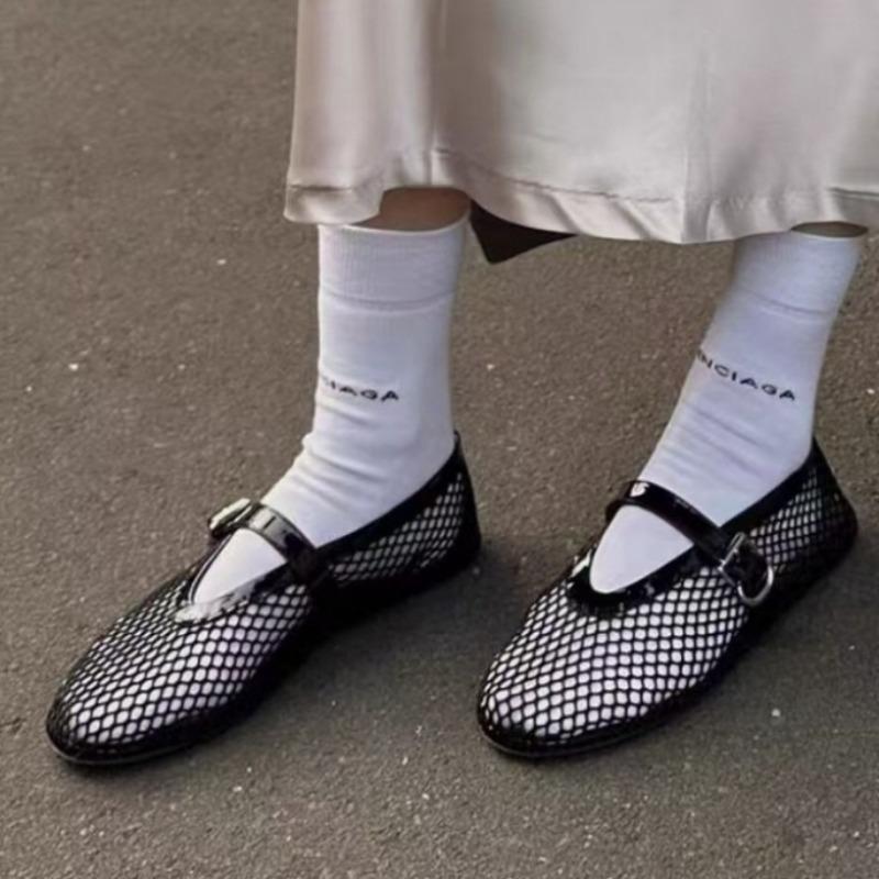 New ballet flats buckle belt mesh hollow breathable spring and summer large size round head fashion single shoes women