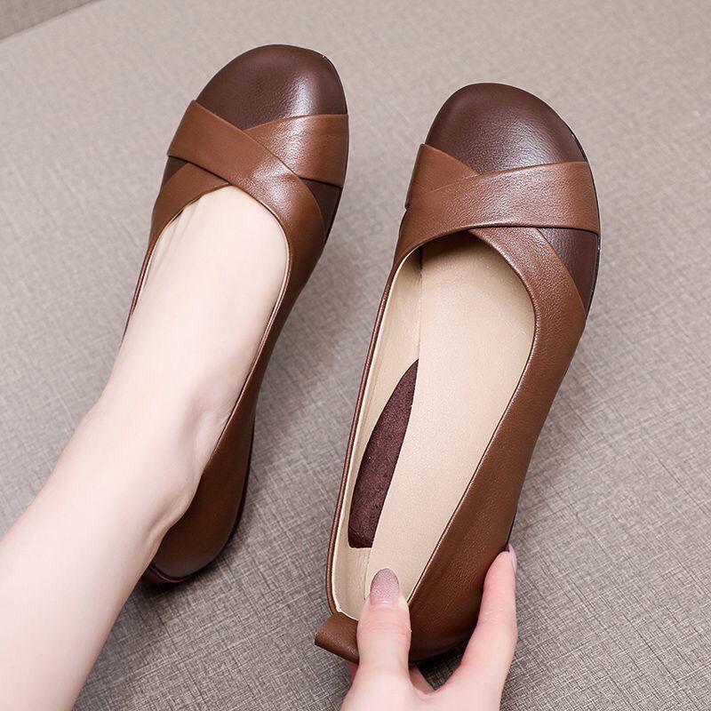 2025 spring and autumn new Doudou shoes retro women's single shoes beef tendon soft sole comfortable shallow mouth mother shoes super soft casual shoe