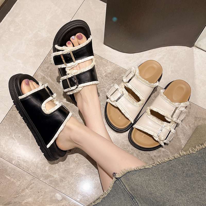Thick-soled slippers women's soft-soled non-slip 2025 outer wear one-word drag new summer height-increasing fashion cool slippers women