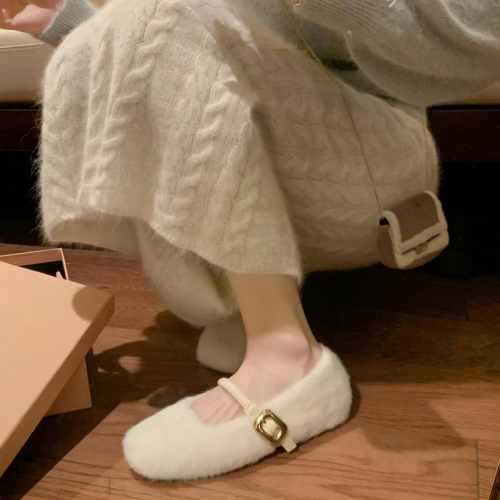 Wool version~ ballet style with inner height increase Mao Mao shoes Mary Jane single shoes women's winter leather cotton shoes snow shoes