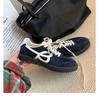 Grape mother leather sports little white shoes retro breathable round head lace-up thick sole heightening lightweight German training board shoes w