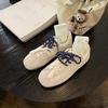 2025 spring new niche square head Forrest Gump training shoes color matching retro round head leather flat bottom casual board shoes women