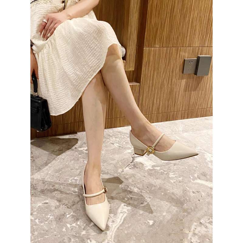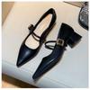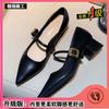 Xiaoxiangfeng Mary Jane thick-heeled single shoes women's 2025 new pointed French retro soft leather one-word with high heels