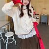Lazy wind color buckle design cartoon pattern knitted cardigan sweater women's autumn sweet soft waxy loose coat