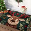 Fluffy Christmas Deer Microfiber Bath Mat - Quick-Dry & Absorbent, Festive Holiday Design with Red Berries & Green Leaves