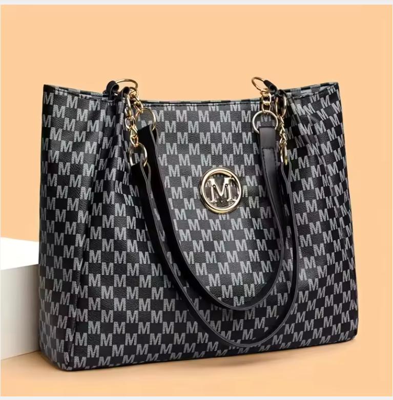 Vintage Geometric Tote Bag Synthetic Leather Letter "M" Design for Women Handbag Shoulder Bag Large Capacity Shopping Travel Bag