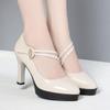 Qipao Women's Chunky Heel Leather Platform Shoes