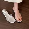 Soft leather version! Round head open-toed transparent one-word with sandals, women wear wedge heel temperament one-word French cool slippers