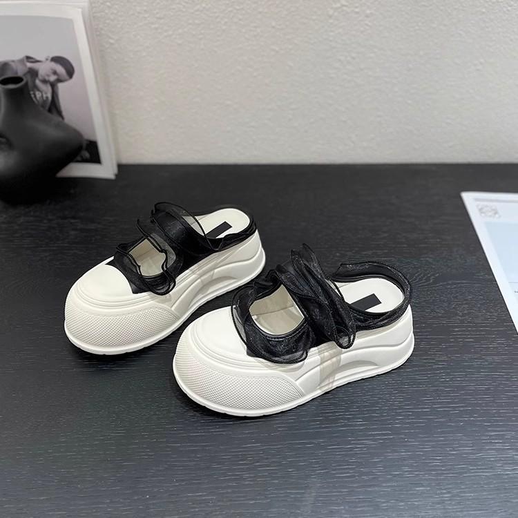 Small 7cm thick bottom 2025 summer new mesh Mary Jane bag head slippers women's muffin bottom light and half drag
