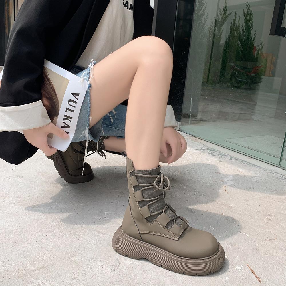 2025 høst nye retro britisk stil mote snørestøvler dame internett-kjendiser ins allsidige tykksålede tynne støvler
