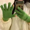 Jelly bean wool knitted gloves, winter women's thick fingers can be exposed to keep warm, five fingers cycling