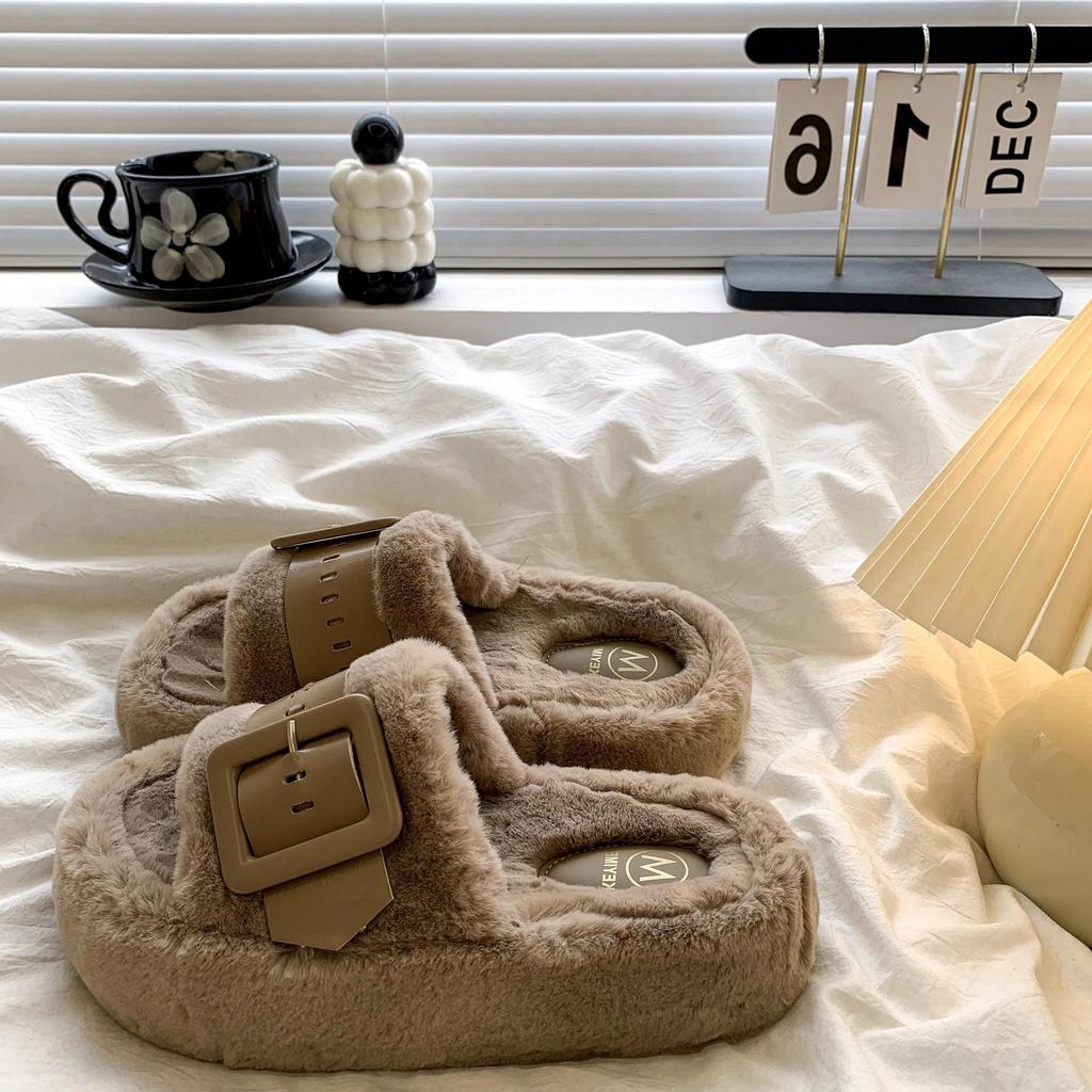 Muffin thick-bottomed Korean version of fluffy slippers for women's autumn and winter new versatile outer wear casual plush office cotton mop