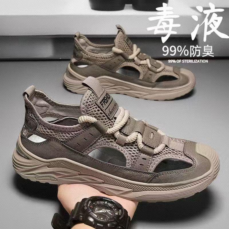 Outdoor sandals summer men's trend hollow men's shoes breathable soft sole bag head casual shoes traceability hole shoes