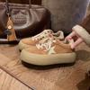 Leather dirty shoes Korean version round head old platform bread shoes retro splicing casual style versatile star board shoes women