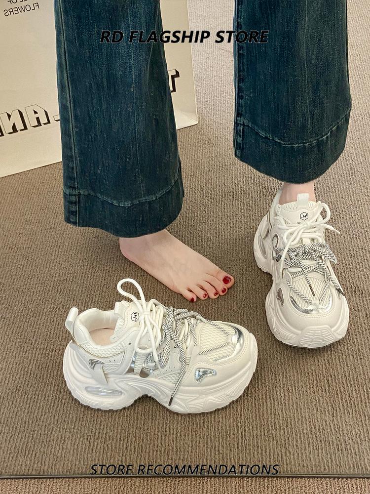 Fashion Shoes Women's Sneakers With Platform Tennis Female Woman-shoes Thick Sole 2025 Trainers Mesh Roses Summer Sneakers Mesh Women's