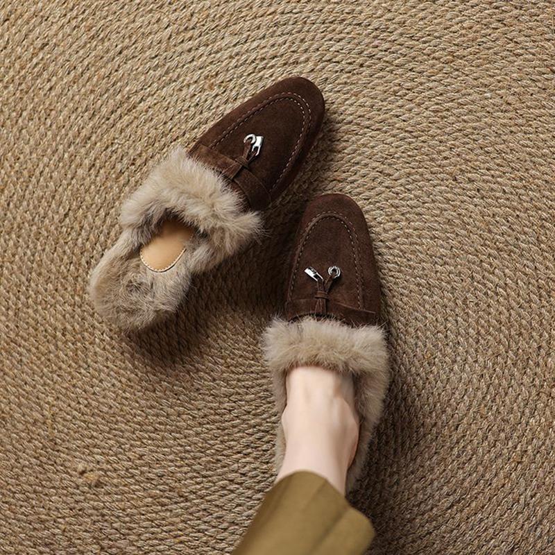 Mote NYE Vintersko Sauesemsket Skinnsko Dame Rund Tå Lav Hæl Skotrekk Tå Slingback Dame Mules Kaninhår Tøfler