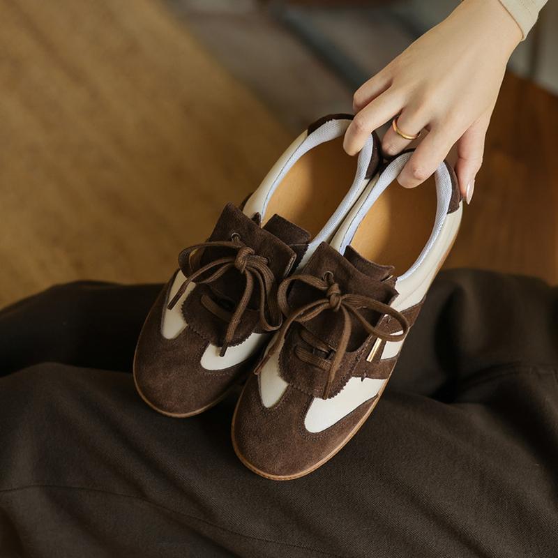 Fashion NEW Autumn Women Shoes Cow Suede Leather Shoes for Women Round Toe Thick Heel Shoes Mixed Colors Lace-up Sneakers German Trainer