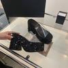 Fashion Slippers Women Summer Slides Shoes Low Big Size Heeled Mules Square heel Denim High Block Fabric Rubber Rome PU Super Cotton