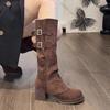 Fashion 2025 Vintage Women Trouser Legs Boots Removable Belt Buckle Autumn Winter Shoes Thick Heel Ladies Elegant Long Booties