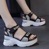 Platform sports sandals women 2025 summer new Internet celebrity slope heel muffin bottom casual student Velcro Roman shoes