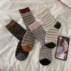 Striped Pile Pile Socks for Women's Mid-calf Retro School Style Autumn and Winter Color-blocked Boneless Thigh-high Socks