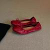 Sheepskin version~ Giant soft ballet shoes women's round head shallow mouth flat-soled single shoes French evening wind bow genuine leather grandm