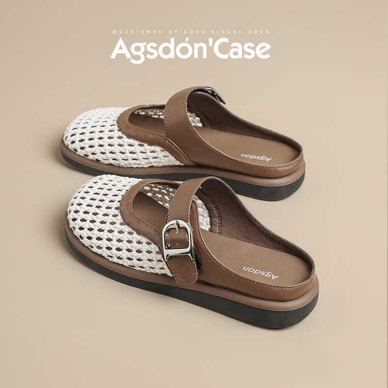 Augustine Baotou Slippers Women's 2025 New Summer Wear Woven Skirt Flat Bottom One Pedal Cool Slippers