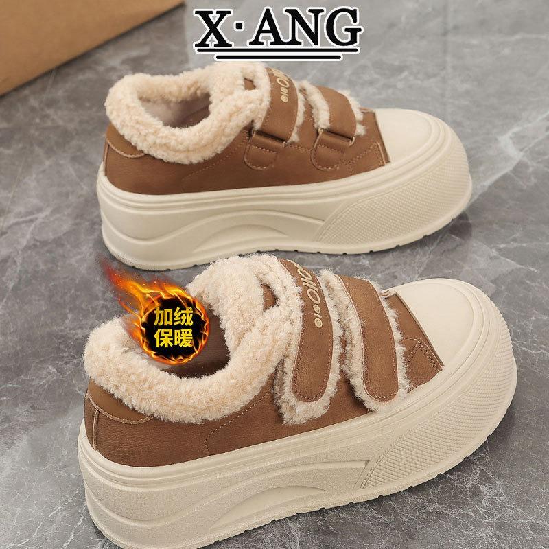 Leather board shoes women's Velcro casual sports shoes children's plush thermal cotton shoes platform lamb wool shoes