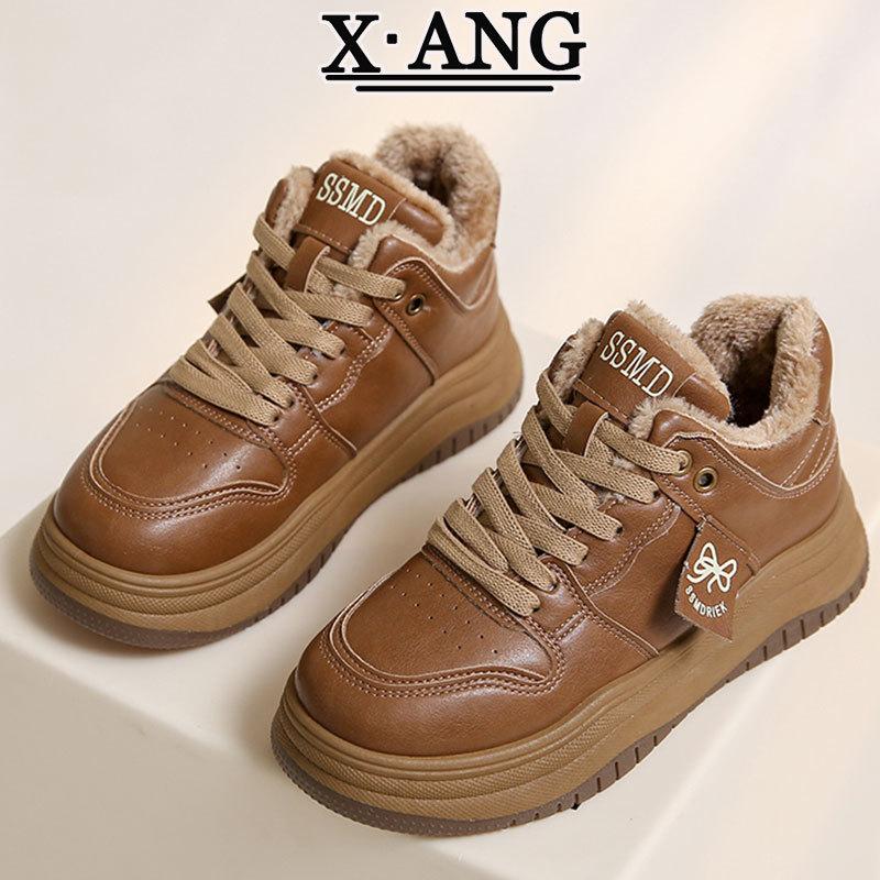Leather high-top shoes children's versatile platform casual sports shoes winter new velvet thickened warm cotton shoes