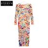 PLEATS PLEASE PP51-JH642 15Stainless Steel Green x Blue Geometric Print One-Piece dress 3 greenUsed