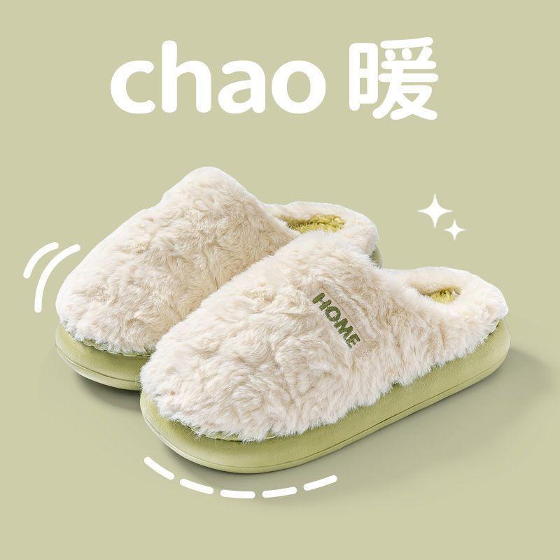 Bomullstøfler med tykk såle, hjemmeinteriør vinter 2025 nye plysj varme og sklisikre hårtøfler