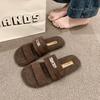 2025 autumn and winter new fashion versatile flat bottom one-word slippers women wear casual and comfortable fluffy slippers women