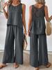 2025 European & American Women's Casual Cotton Linen Loose Top & Wide-Leg Pants Set