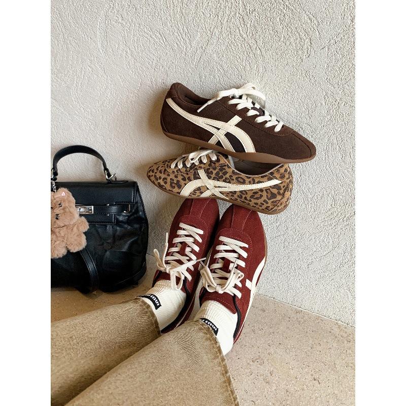 Kuskinn~ innvendig høydeøkning 5cm retro leopardtrykk tyske treningssko damesko 2025 nye Forrest Gump-sko boardsko fritidssportssko