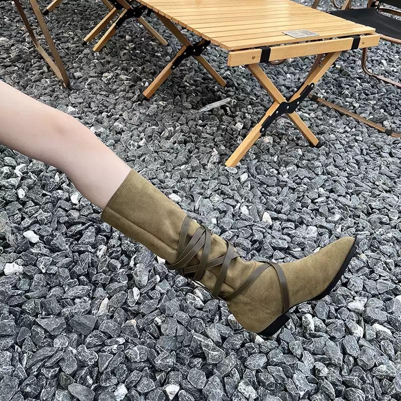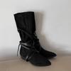Axige has the same leather stacking boots for women 2025 new western cowboy boots versatile pointed sleeve knight boots for women