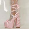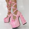 2025 Nye Lolita Rosa Sandaler Søte Stroppesandaler Plattform Tykk Hæl Stor Størrelse 47 Damesko Sateng Sløyfe Snøresandaler Motesandaler