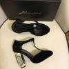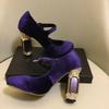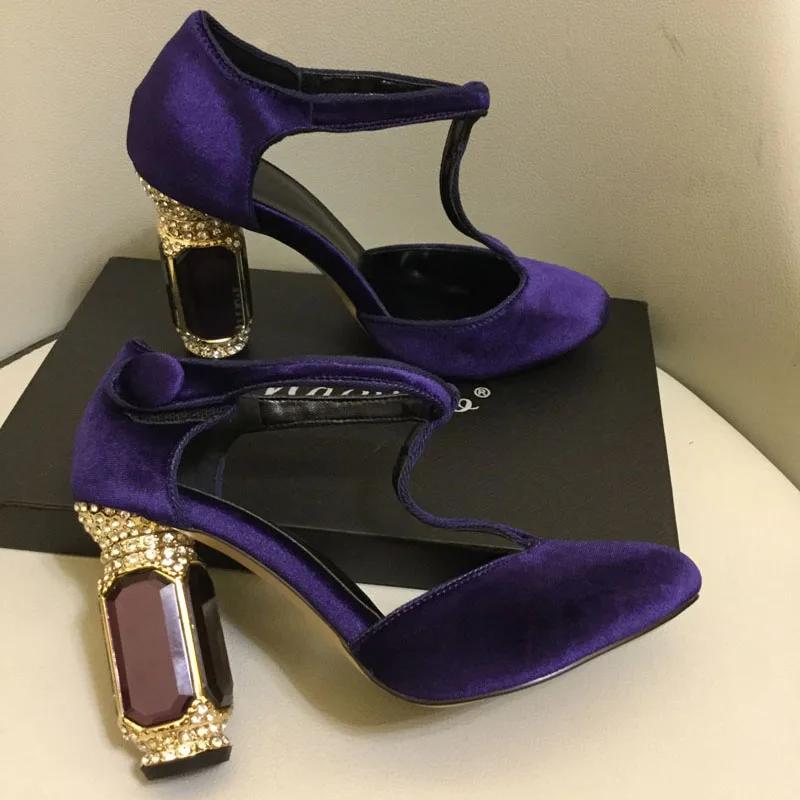 2025 New Velvet Round Toe Women Sandals Gemstone Rhinestone Bling Bling Heel Chunky High Heels Shallow Party Stage Shoes