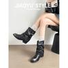 Leather Jiaoyu inner heightening trouser tube short boots 2025 new retro pleated stacking boots thick heel Maillard Martin boots