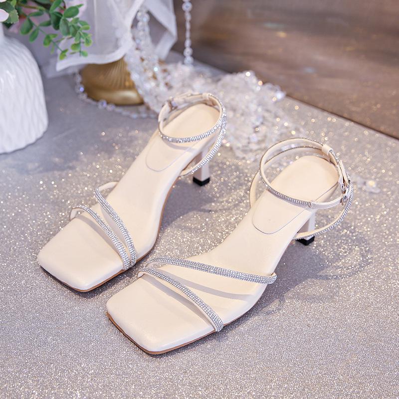 Rhinestone word with shit-stepping sandals women wear beautiful high heels in summer women's 2025 new fashion light luxury