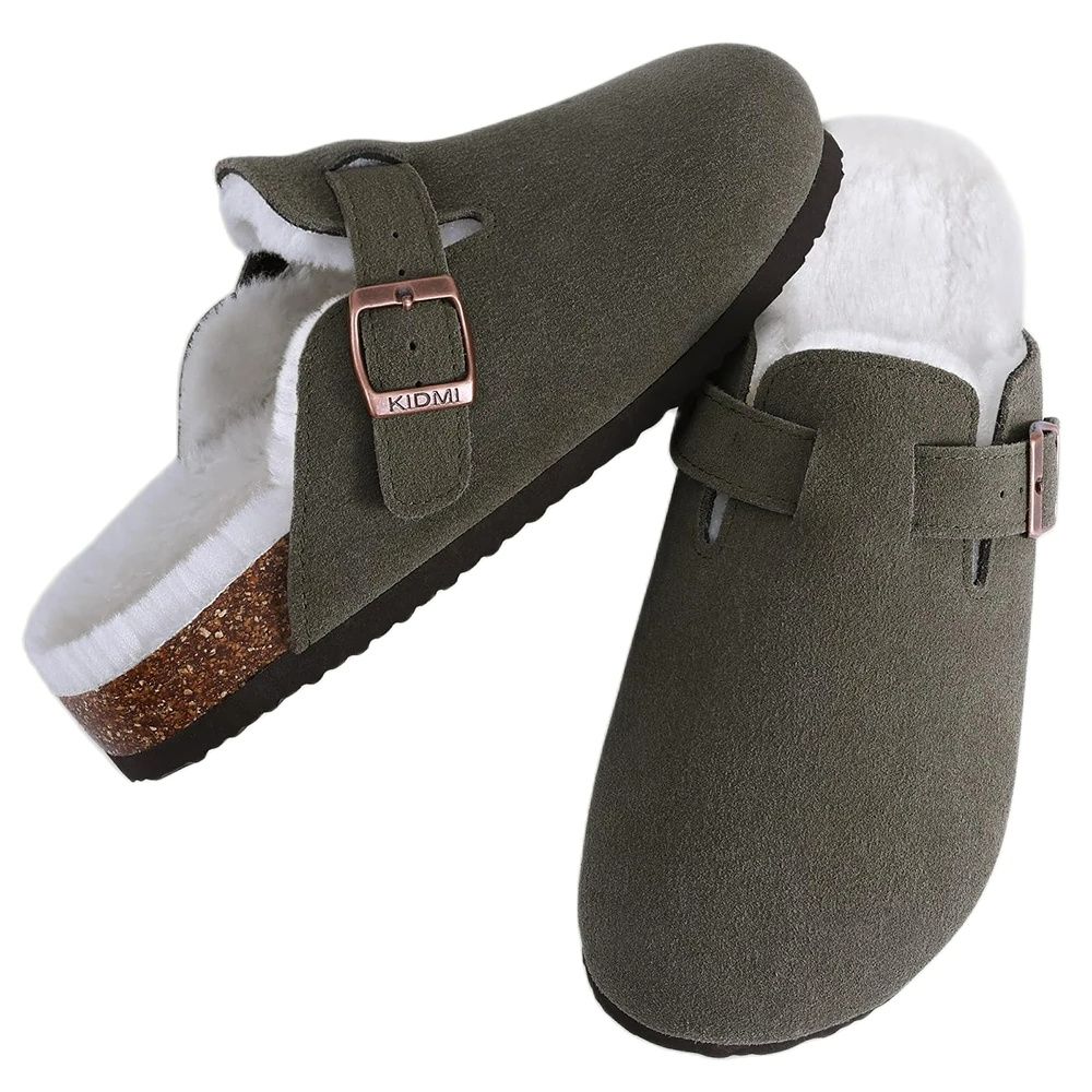 Mote Crestar Dame Fôrede Semskede Tresko Vinter Fuzzy Kork Fotseng Mules Slip Unisex Justerbar Spenne Potetsko med Fotbuestøtte
