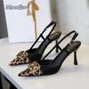 Fashion Satin Leopard Pointed Toe Women's Banquet Dress Shoes Elegant Thin High Heeled Pumps Ankle Strap Sexy Tacones Zapatos De Mujer