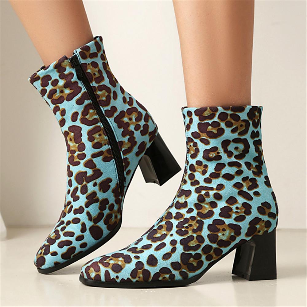 Fashion 2025 Autumn High Heels Ankle Boots Plus Size Leopard Women Boots Retro Pointed Ladies Shoes Side Zipper Booties Botas De Mujer