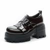 Fashion 9cm Thickened Women's Single Shoes Increase Petite Vintage Style British Style Flat Top Leather Shoes Daily Use Round Toe Shoes