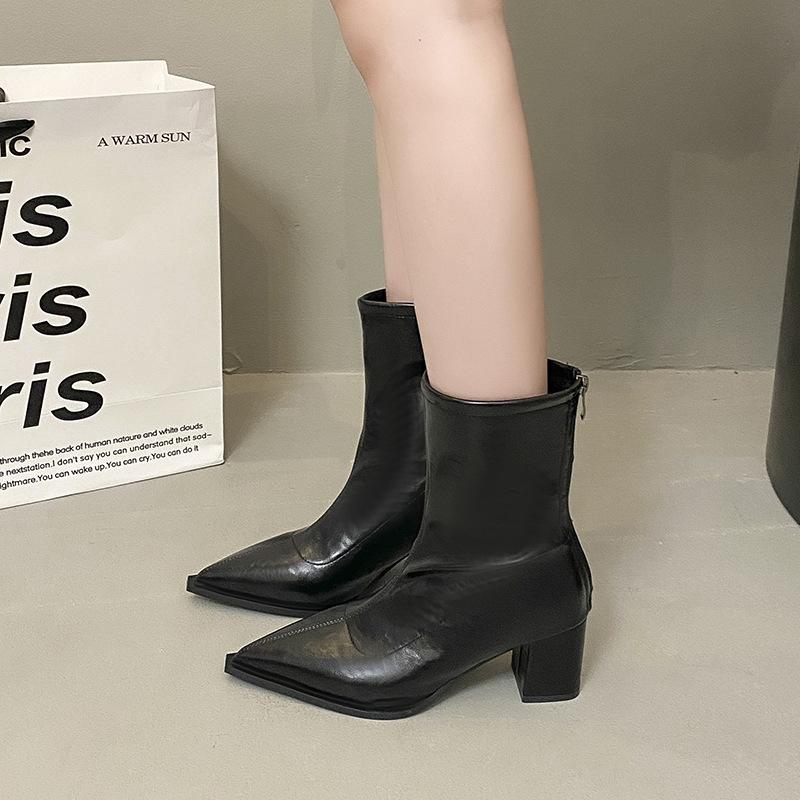 High Heel Coarse Heel Pointed Small Ankle Boots Women's Shoes 2025 Summer Brown Absolute Foreign Martin Boots Skinny Short Boots
