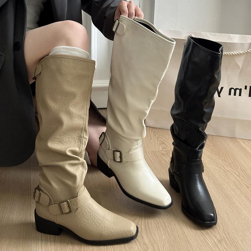 Vintage pleated simple fashion boots women's 2025 autumn and winter new versatile daily Maillard high boots knight boots tide