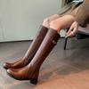 Full av aura~ Lock ridestøvler dame 2025 høst og vinter nye tykk hæl høye støvler rund tå men knehøye støvler